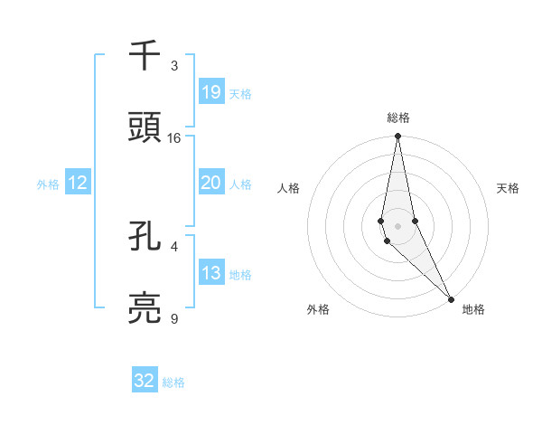 千頭 孔亮さんの総格は32画の5点!