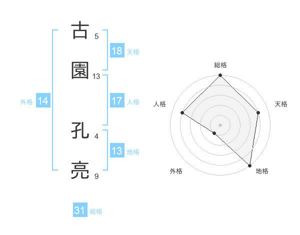 古園 孔亮さんを姓名の画数から五運を鑑定