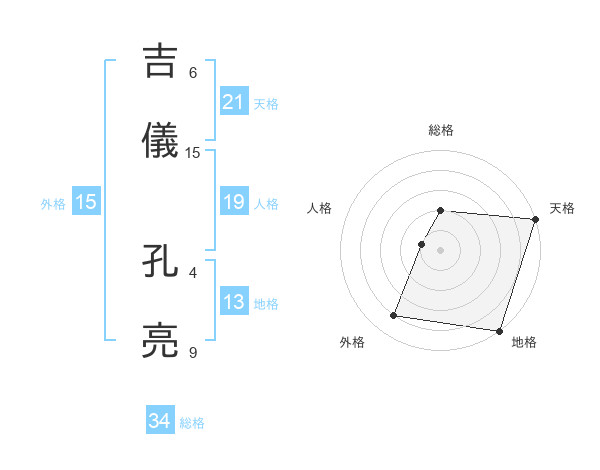 吉儀 孔亮さんの天格は21画の5点!