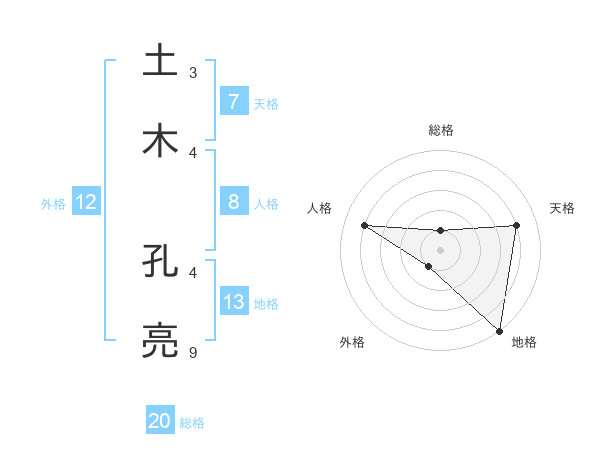 土木 孔亮さんを姓名の画数から五運を鑑定