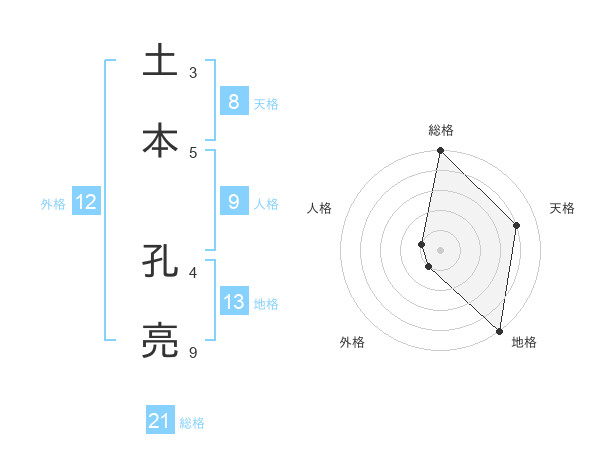 土本 孔亮さんの総格は21画の5点!