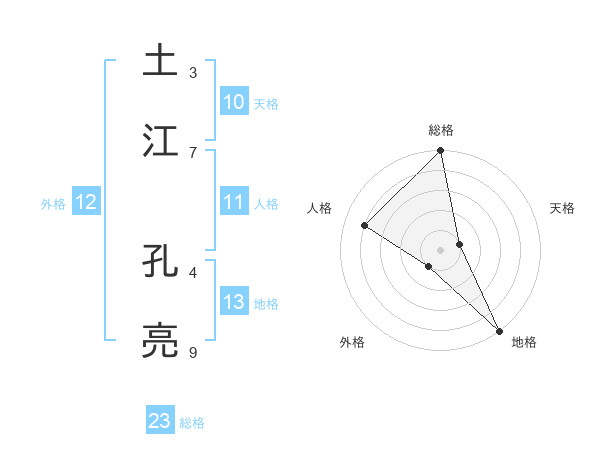 土江 孔亮さんの総格は23画の5点!