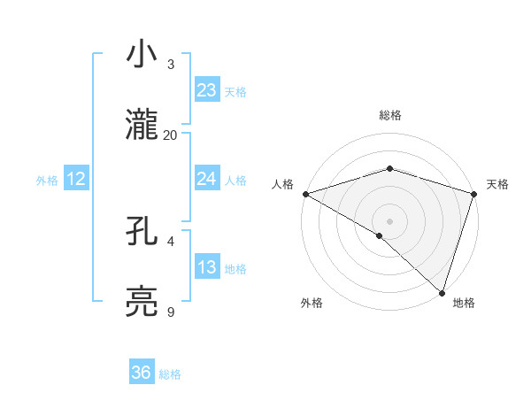 小瀧 孔亮さんの総格は36画の3点!