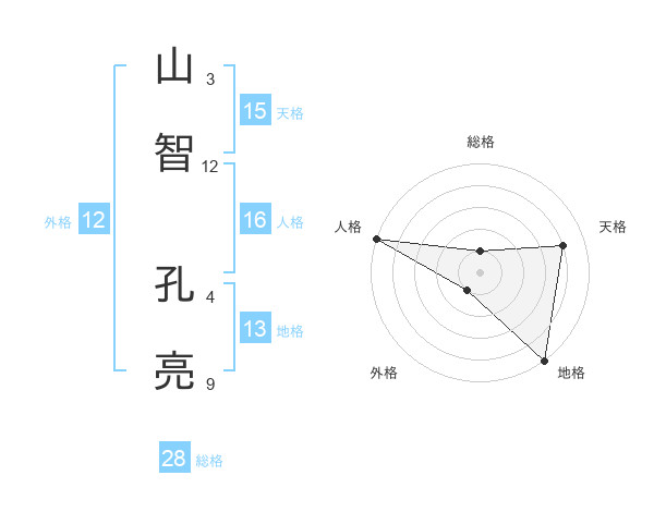 山智 孔亮さんの総格は28画の1点!