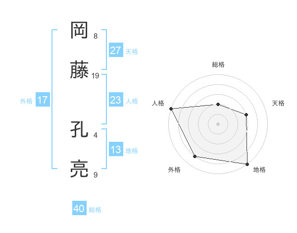 岡藤 孔亮さんを姓名の画数から五運を鑑定