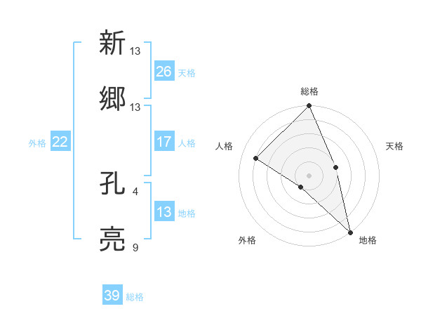新郷 孔亮さんの総格は39画の5点!