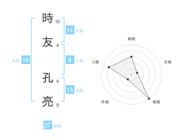 時友 孔亮さんの総格は27画の3点!