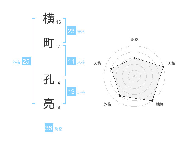 横町 孔亮さんの天格は23画の5点!