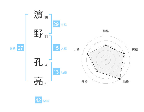 濵野 孔亮さんを姓名の画数から五運を鑑定