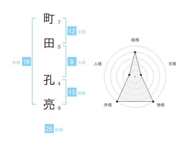 町田 孔亮さんを姓名の画数から五運を鑑定