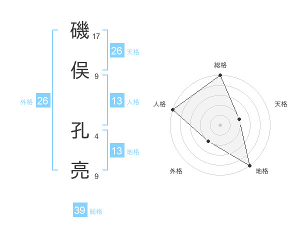 磯俣 孔亮さんの天格は26画の2点!