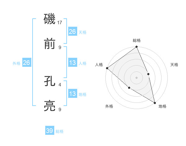 磯前 孔亮さんの総格は39画の5点!