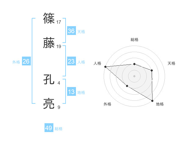 篠藤 孔亮さんの総格は49画の2点!