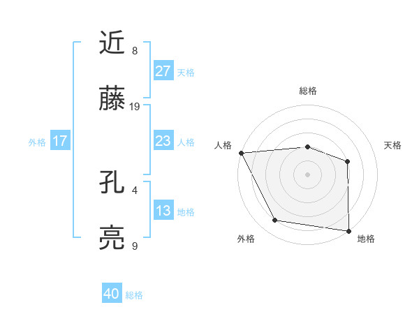 近藤 孔亮さんを姓名の画数から五運を鑑定