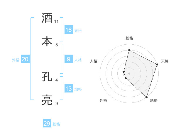 酒本 孔亮さんを姓名の画数から五運を鑑定