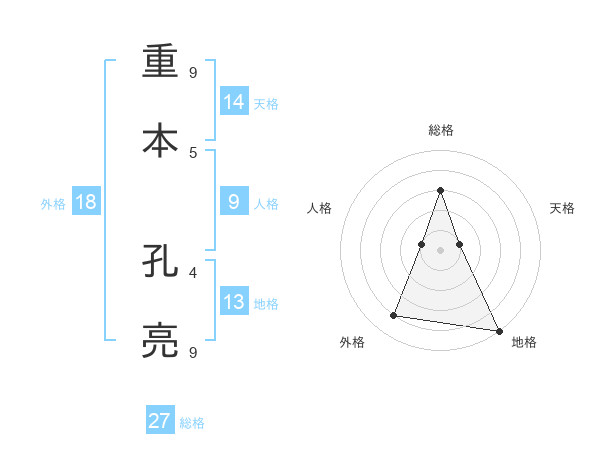 重本 孔亮さんを姓名の画数から五運を鑑定