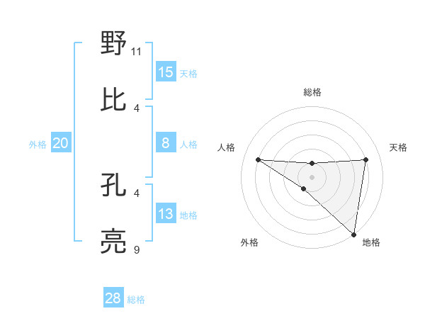 野比 孔亮さんの総格は28画の1点