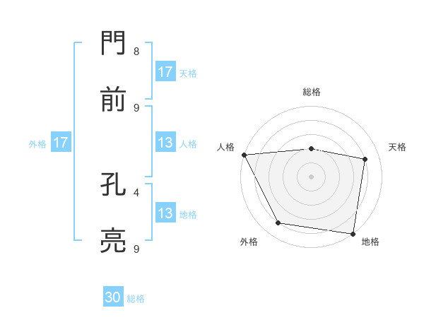 門前 孔亮さんを姓名の画数から五運を鑑定