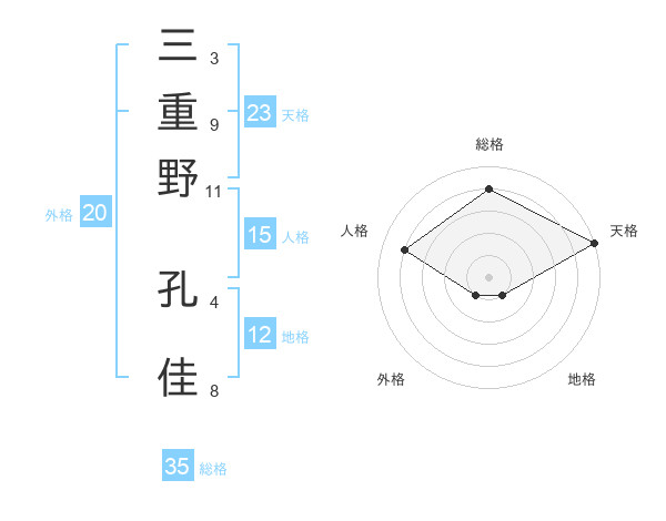 三重野 孔佳さんを姓名の画数から五運を鑑定