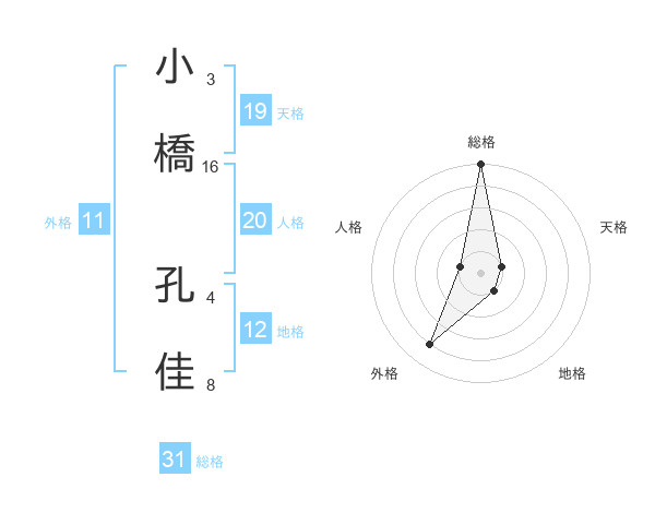 小橋 孔佳さんを姓名の画数から五運を鑑定