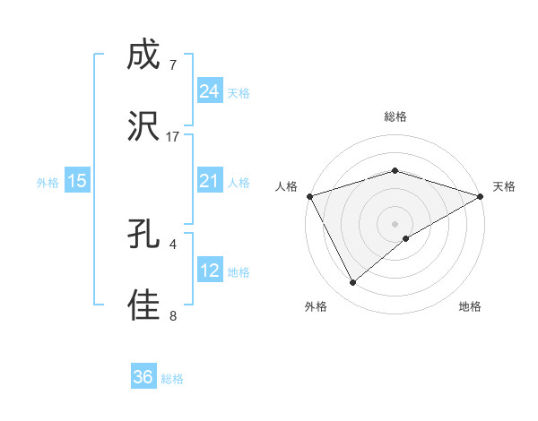 成沢 孔佳さんを姓名の画数から五運を鑑定