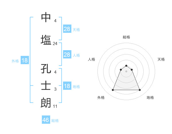 中塩 孔士朗さんを姓名の画数から五運を鑑定