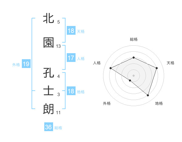 北園 孔士朗さんを姓名の画数から五運を鑑定