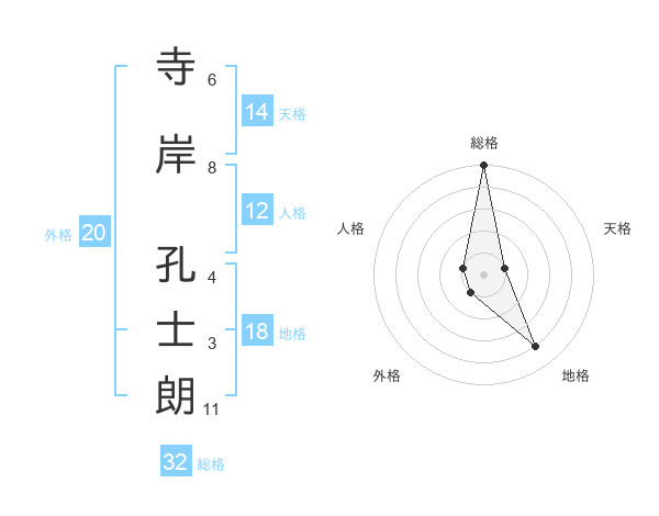 寺岸 孔士朗さんを姓名の画数から五運を鑑定