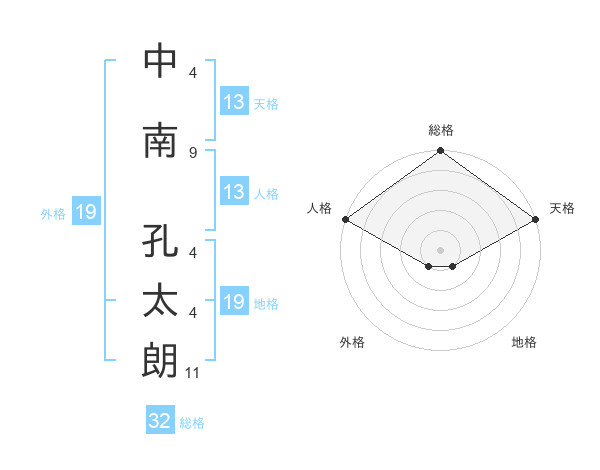 中南 孔太朗さんの天格は13画の5点!
