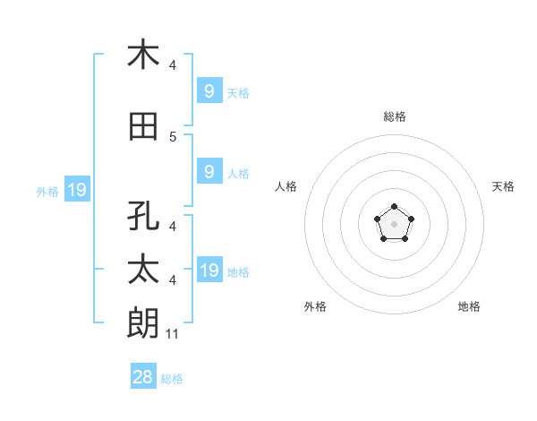 木田 孔太朗さんを姓名の画数から五運を鑑定