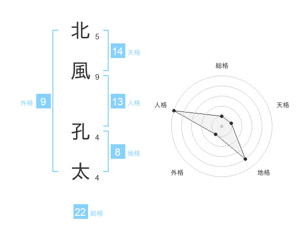 北風 孔太さんを姓名の画数から五運を鑑定
