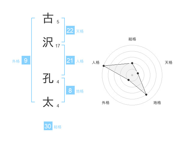 古沢 孔太さんを姓名の画数から五運を鑑定