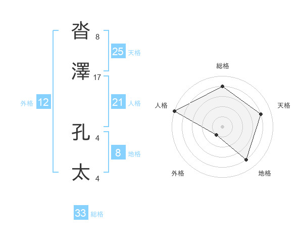 沓澤 孔太さんの総格は33画の4点!
