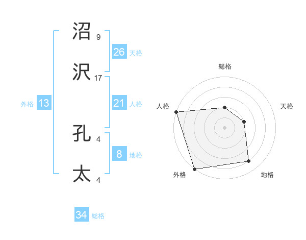 沼沢 孔太さんの総格は34画の2点!