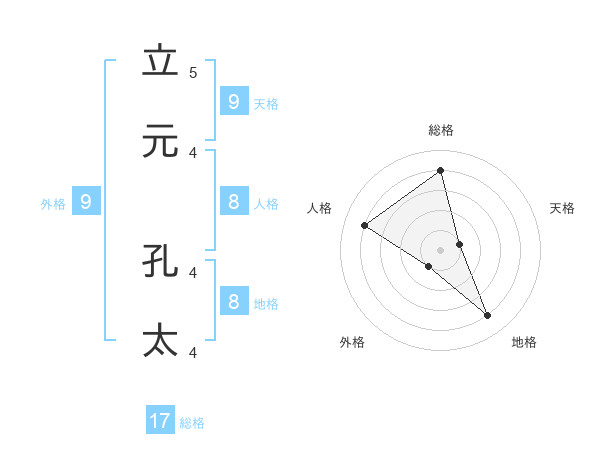 立元 孔太さんの総格は17画の4点!