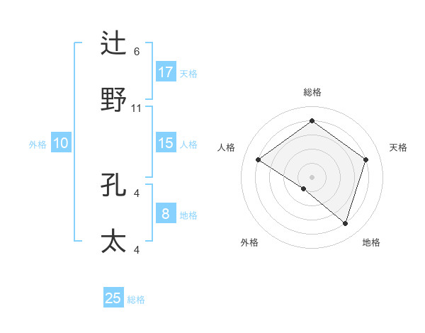 辻野 孔太さんの総格は25画の4点!