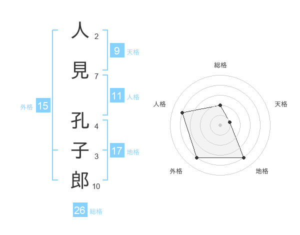 人見 孔子郎さんの総格は26画の2点!