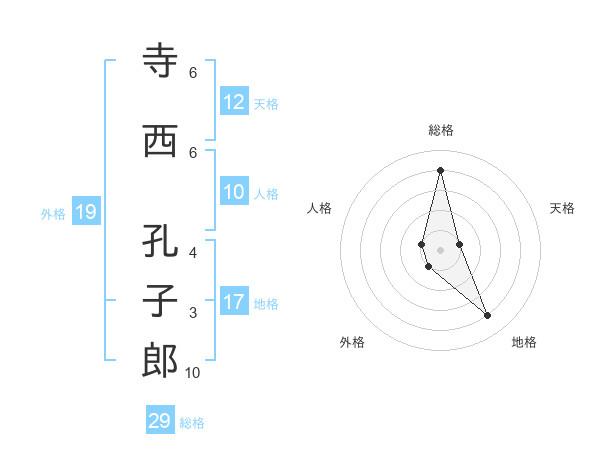 寺西 孔子郎さんの総格は29画の4点!