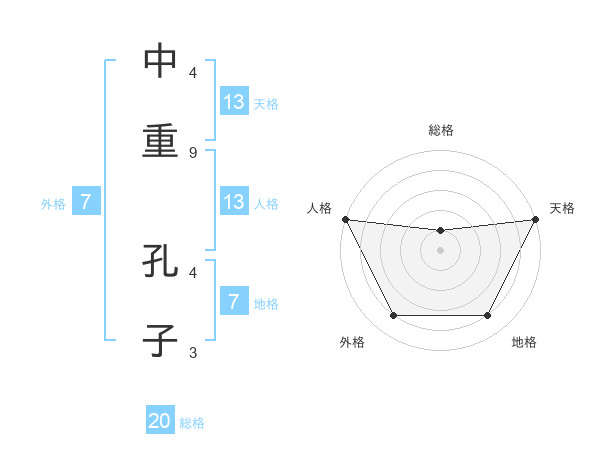 中重 孔子さんの総格は20画の1点!
