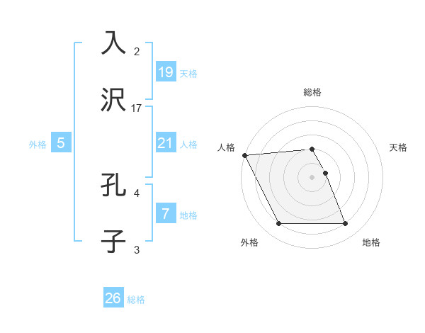 入沢 孔子さんの総格は26画の2点!