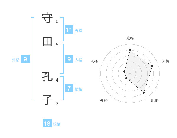 守田 孔子さんの天格は11画の4点!