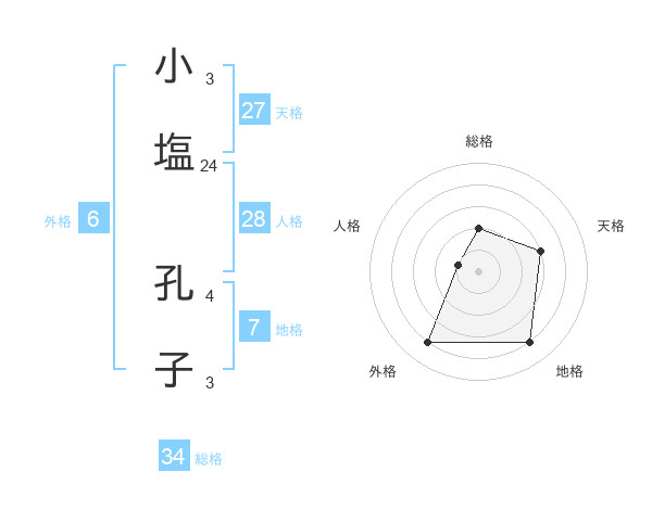 小塩 孔子さんの総格は34画の2点!