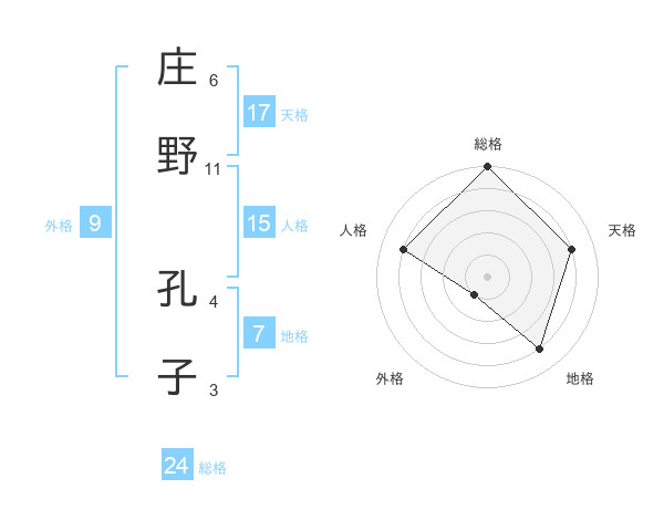 庄野 孔子さんの総格は24画の5点!