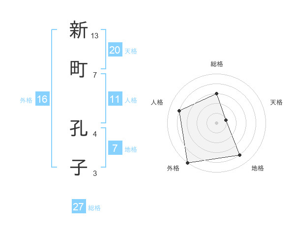 新町 孔子さんの総格は27画の3点!