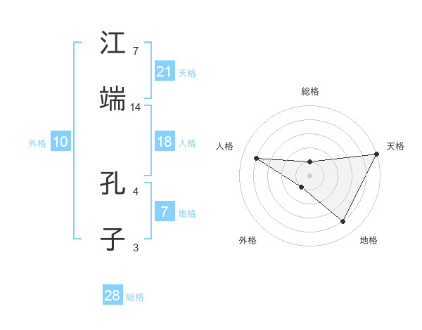 江端 孔子さんの天格は21画の5点!