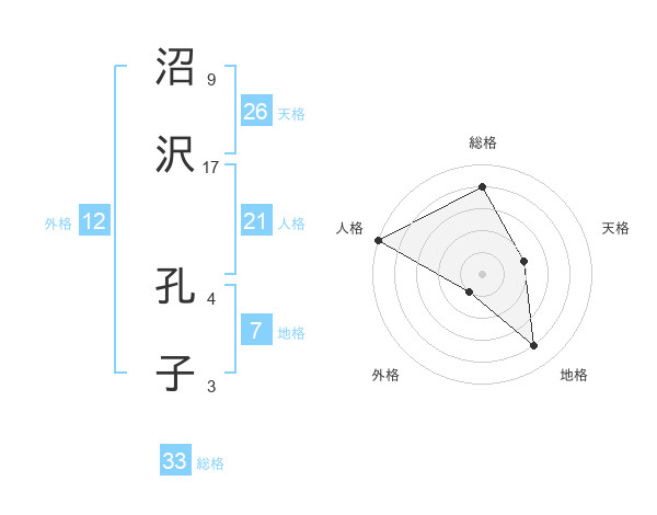 沼沢 孔子さんの総格は33画の4点!