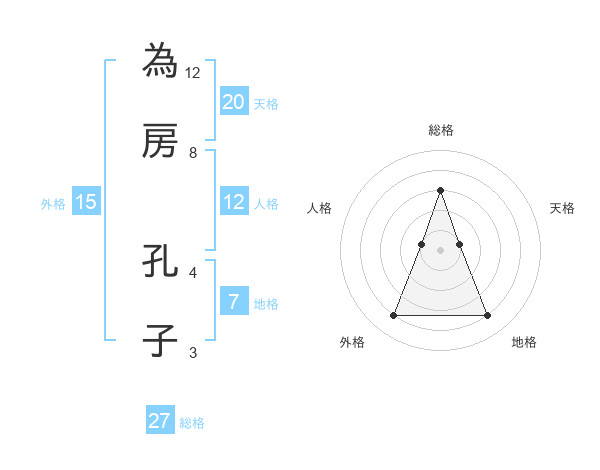 為房 孔子さんの総格は27画の3点!