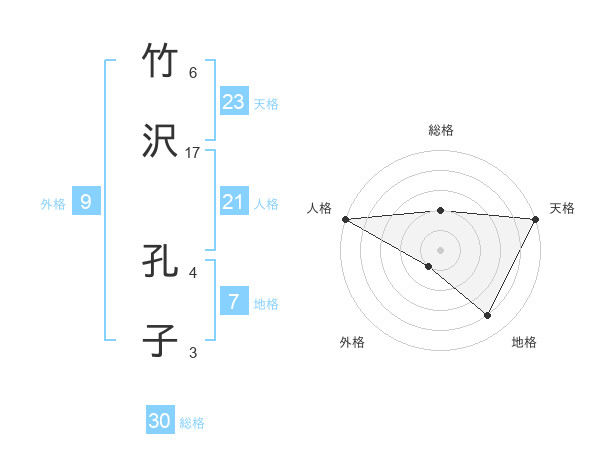 竹沢 孔子さんの天格は23画の5点!
