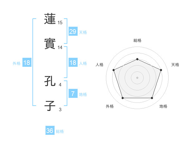 蓮實 孔子さんの総格は36画の3点!