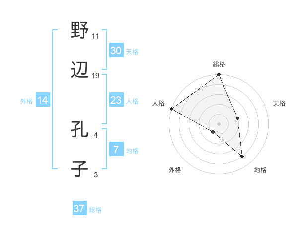野辺 孔子さんの総格は37画の5点!